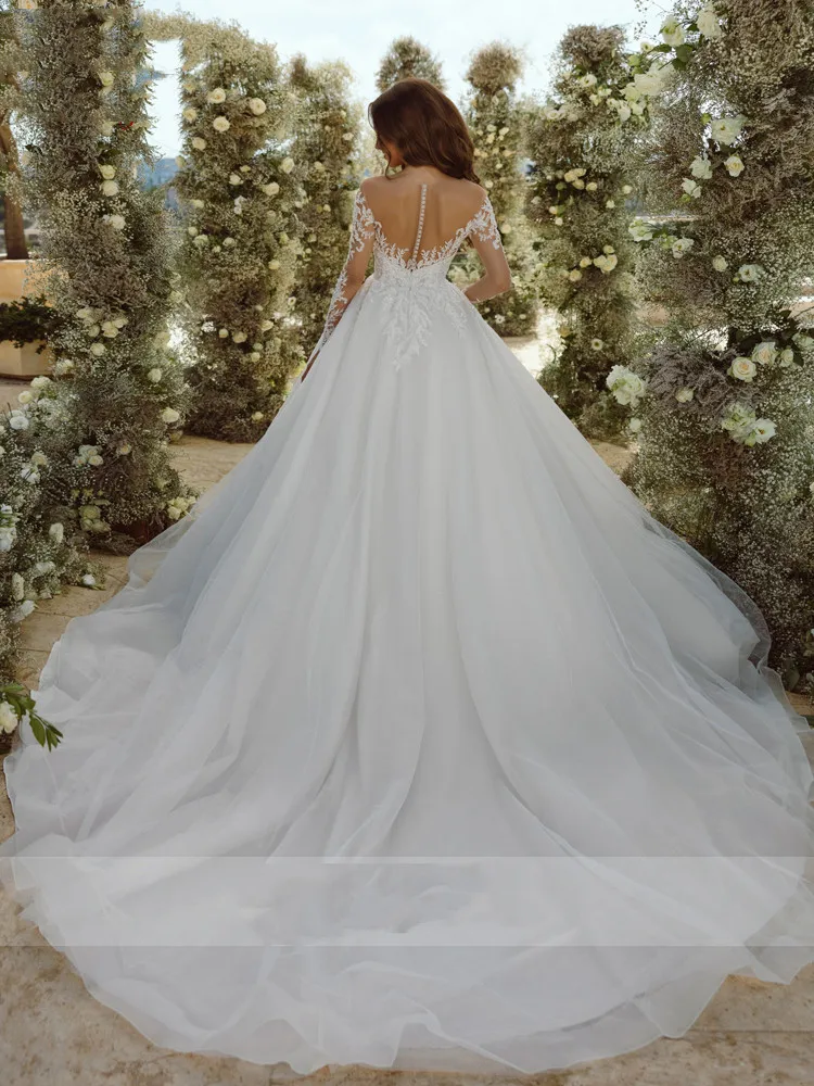 Embrace Elegance: The Scoop Neck Ball Gown Beaded A-Line Wedding Dress from TheFashionwiz!
