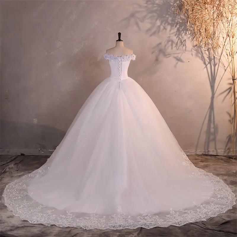 · Exquisite Style: The dress embodies a delicate balance of classic and contemporary design. The A-line silhouette flatters all body types, creating a figure-elongating effect that flows gracefully into a court train, adding a touch of regal elegance.