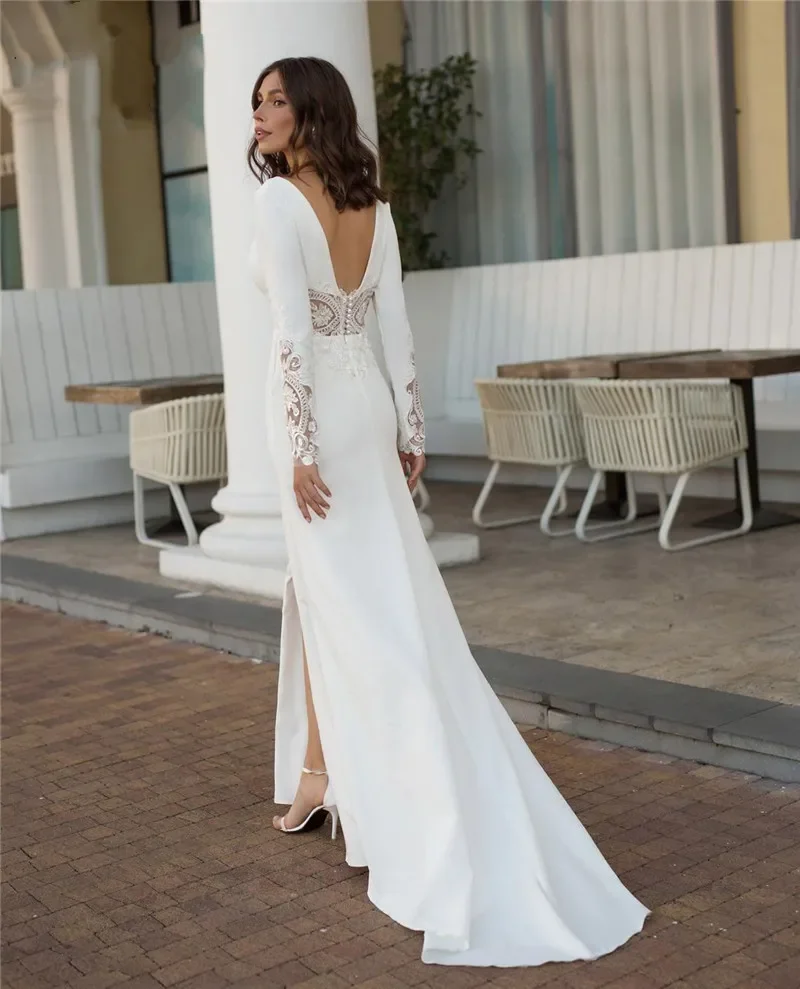 The Long Sleeve Front Slit V-Neck Mermaid Wedding Dress is more than just a garment; it's a statement of elegance and confidence. Whether you're walking down the aisle or attending a special event, this dress will make you feel like a queen.